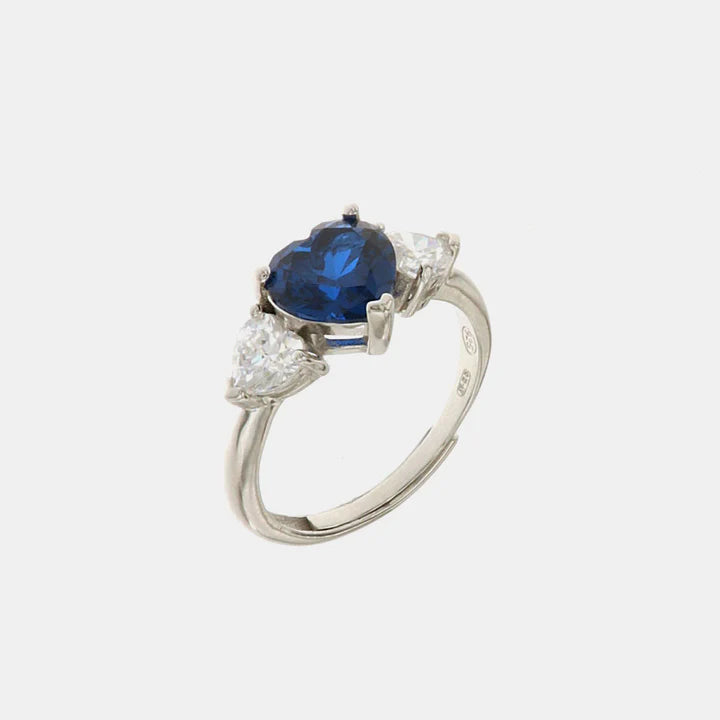 Anello in Argento 925 con cuori in zirconi bianchi e blu