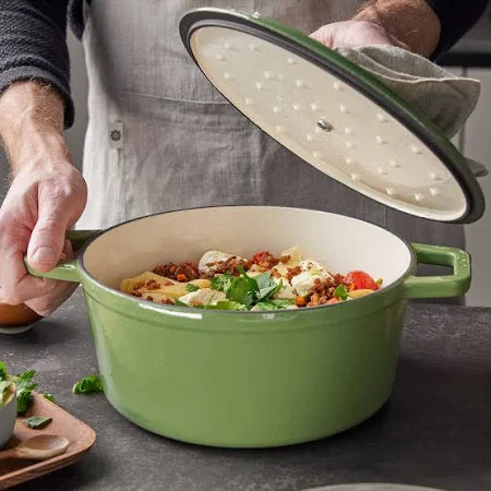 La casseruola è priva di PFAS, PTFE e PFOA, per una cucina più sana e consapevole. Il fondo smaltato è resistente all’usura e compatibile con tutti i tipi di piani cottura, inclusa l’induzione. È inoltre utilizzabile in forno fino a 250 °C, ideale per completare le cotture in modo professionale.