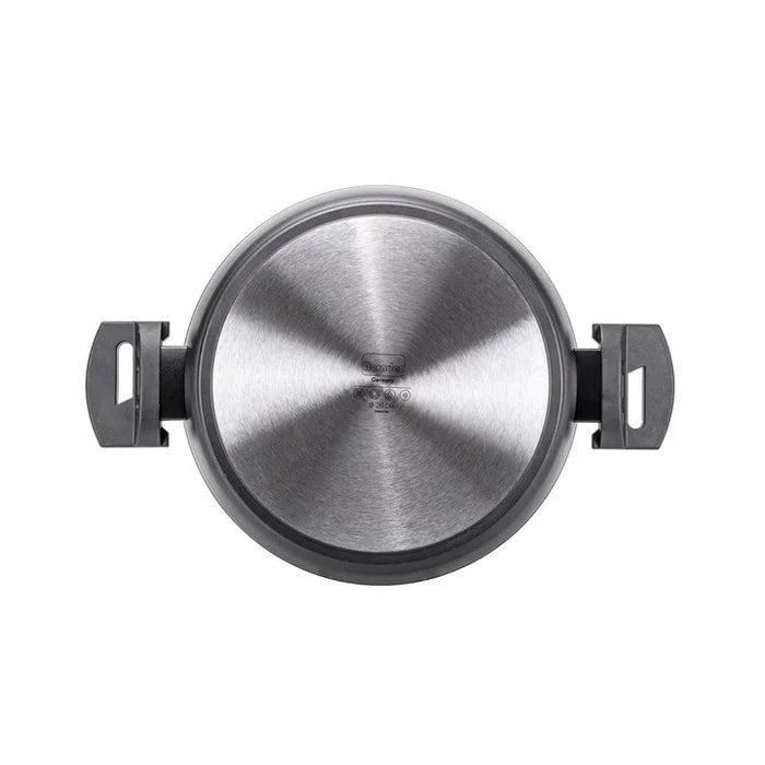 Il fondo spazzolato in acciaio ferromagnetico rende la padella compatibile con tutti i piani cottura, compresa l'induzione, garantendo un riscaldamento veloce e un'ottima efficienza energetica. Prodotta in Italia, il tegame 28 cm Berndes unisce qualità costruttiva, praticità e affidabilità.