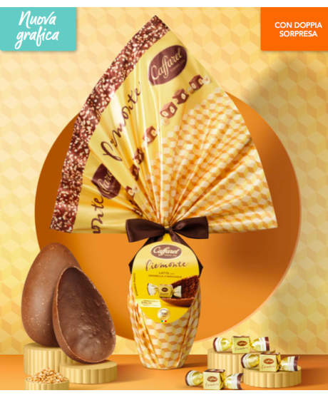 CAFFAREL UOVO DI CIOCCOLATO PIEMONTE AL LATTE CON GRANELLA DI NOCCIOLE 270 GR.