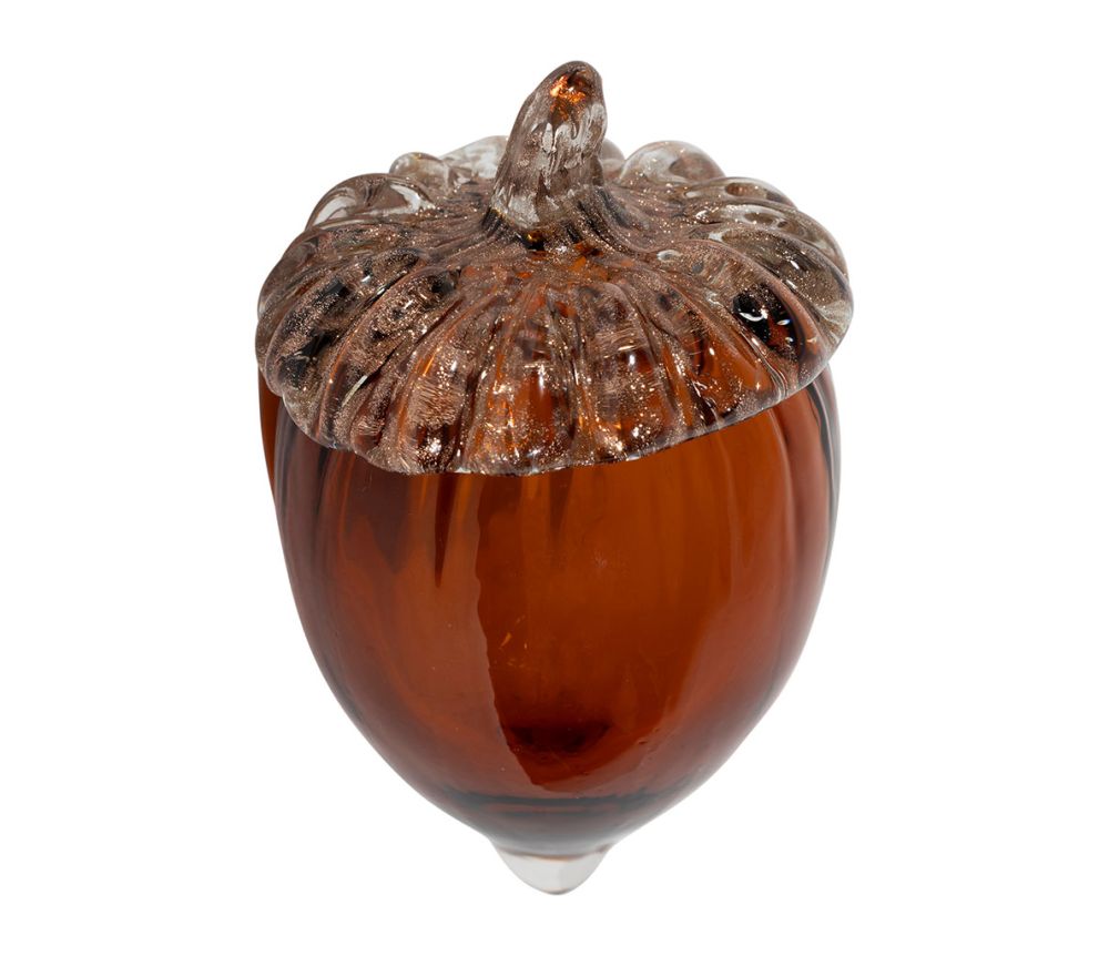 DECORAZIONE IN VETRO GHIANDA MARRONE GLITTER