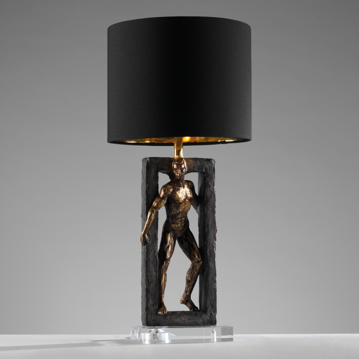 LAMPADA CON STRUTTURA IN RESINA BASE RETTANGOLARE IN PLEXIGLASS 25x58,5 h. cm. SPLENDIDA LAMPADA IMPORTANTE PER CASA MODERNA, CLASSICA E CONTEMPORANEA CAPPELLO NERO