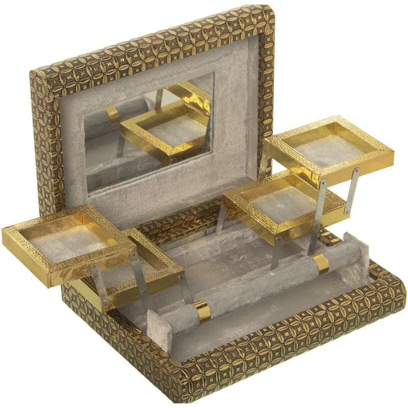 PORTAGIOIE IN METALLO ORO CON SCOMPARTI E SPECCHIO STILE INDIANO