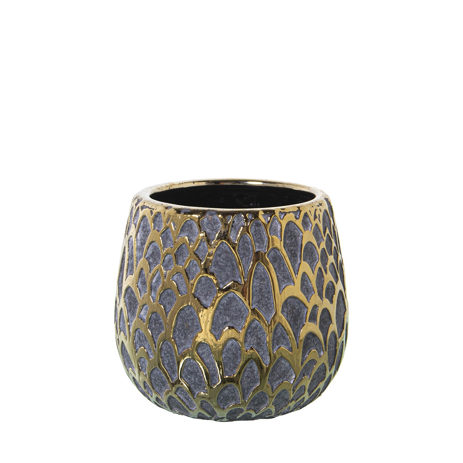 VASO PORTAPIANTINA IN CERAMICA GRIGIO SCURO E ORO Ø13x12cm